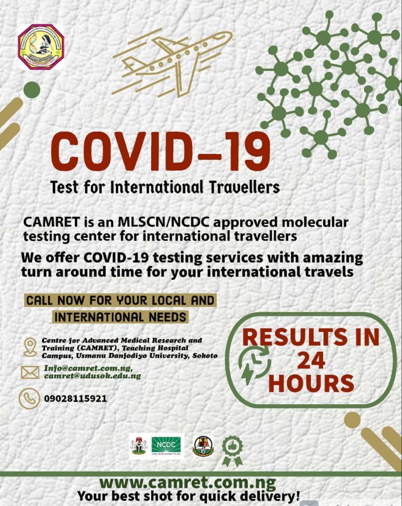 Are you traveling out of Nigeria? If yes, CAMRET has you covered. CAMRET is an MLSCN and NCDC approved molecular testing Centre for COVID-19 testing. The best part is: accurate results are guarante....
