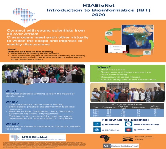 Call for applications for The 6th iteration of H3ABioNet's Introduction to Bioinformatics Course (IBT_2021) is now accepting ....